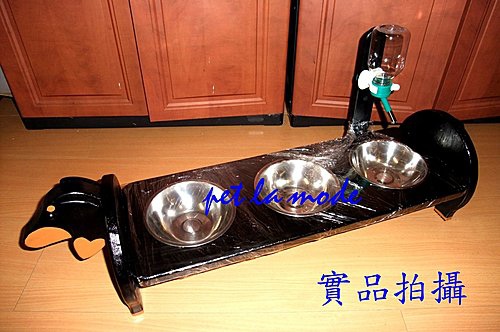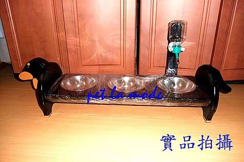 手工(3口組系列)~黑四目臘腸狗~加強版訂製餐桌+含可調式飲水器