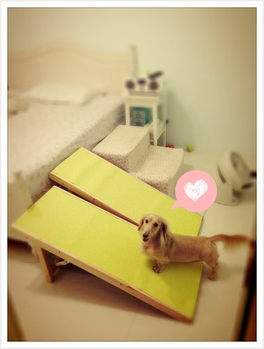 可愛的臘腸狗與他的新樓梯照片(斜坡梯) petlamode
